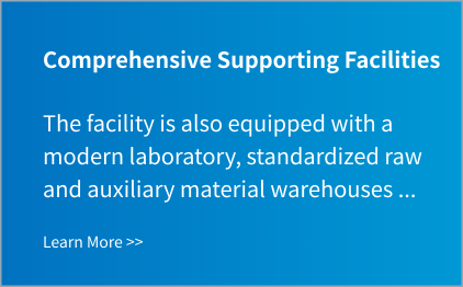 Furthermore, we are equipped with a modern laboratory, standardized raw and auxiliary material warehouses, large-scale chemical storage tank areas.